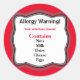 Pegatinas de la etiqueta de advertencia alérgica con dibujos de caricaturas. Alerta de ingrediente de alergia a los alimentos.