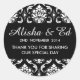 Etiqueta de agradecimiento de la boda de Damasco en blanco y negro. Más diseños y estilos disponibles en nuestra tienda en www.zazzle.com/monogramgallery