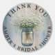 Agregue un toque sincero a sus detalles de boda con esta etiqueta de agradecimiento rústica, que presenta un tarro de mason lleno de delicado aliento de bebé y luces de cuerda brillantes. Perfecto para sellar bolsas de detalles, tarros o cajas en bodas de granero, celebraciones campestres o recepciones al aire libre. Este diseño aporta calidez y encanto a su día especial y es totalmente personalizable para incluir sus nombres o mensaje.