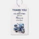 Etiqueta de agradecimiento de moto azul editable p