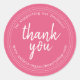 Elegante, moderna y simple etiqueta de agradecimiento al cliente con el texto gracias por apoyar nuestro negocio en caligrafía de guión elegante y tipografía moderna en un fondo rosa caliente. Puede utilizar las pegatinas para los pedidos de productos de su pequeña empresa, paquetes, bolsas de regalo o como sello de sobre. Simplemente agregue su texto de agradecimiento y agregue el nombre de su negocio o sitio web de su negocio. Diseñado exclusivamente para usted por Happy Dolphin Studio. Si necesita ayuda o productos coincidentes, por favor contáctenos en happydolphinstudio@outlook.com.