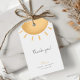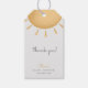 La imagen muestra una etiqueta de agradecimiento para Baby Shower "Sunshine Boho Baby Shower", una etiqueta bellamente diseñada perfecta para expresar gratitud a los invitados en una fiesta de bebé.
