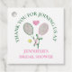 Agrega un toque final encantador a tu celebración con esta etiqueta de agradecimiento para boda de tenis con el tema 'El amor es una pareja perfecta'. Con elegantes raquetas de tenis rosadas y verdes con un patrón de rayas preppy en la parte posterior, esta etiqueta de agradecimiento personalizable es perfecta para los favores de la boda de tenis, las celebraciones de boda y las fiestas deportivas chic. Personaliza con el nombre de la novia para un recuerdo memorable que tus invitados amarán.