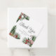 Estas elegantes etiquetas de agradecimiento para ducha de novia presentan ilustraciones temáticas de flamencos tropicales dibujadas a mano en tinta negra, que muestran flamencos rosados, flores de hibisco y jazmín, una piña y hojas tropicales. La parte posterior presenta un hermoso patrón con estos elementos más una bebida tropical.