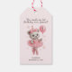 Envuelve el cumpleaños de tu pequeña bailarina con esta adorable etiqueta de agradecimiento de osito bailarina. Diseñada en suave rosa con un osito de peluche con tutú de acuarela, zapatos de ballet y sosteniendo un globo marcado con un "1", esta dulce etiqueta es el toque final perfecto para la fiesta del primer cumpleaños de tu bebé.