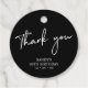 Esta simple etiqueta de agradecimiento personalizada añadirá un detalle elegante a tu día especial. Este diseño presenta letras de estilo moderno "Gracias" con texto personalizado. Las invitaciones de cumpleaños y suministros para fiestas de aniversario están disponibles en mi tienda BaraBomDesign.