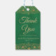 Agregue el toque final perfecto a los recuerdos de su evento con esta elegante etiqueta de Quinceañera en verde esmeralda y dorado. Con delicado arte de línea floral dorada y letras elegantes, esta etiqueta es ideal para adjuntar a bolsas de regalo, dulces para llevar a casa o recuerdos de mesa. Personalice con su nombre y fecha de celebración para un detalle pulido y memorable que coincida con su suite completa de Quinceañera.