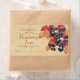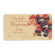Un ilustracion de arándanos con hojas rojas, en un fondo beige con texto de color russet, hecho de mi propia pintura. La etiqueta está preparada para el envasado o embotellado de mermeladas de fruta caseras, confituras y conservas. Puedes dejar el espacio de fecha para escribir, o cambiar a la fecha en que se hizo tu mermelada o jalea.