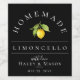 Preciosa etiqueta de bebida limoncello con limón y hojas en acuarela. Diseñada para combinar con nuestra Colección de Huertos de Cítricos. El color de fondo, mostrado en negro, se puede personalizar.