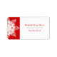 Etiqueta de boda de invierno rojo con copo de nieve, con un copo de nieve blanco sobre fondo rojo. Una elección perfecta para los bodas de invierno de diciembre. Algunos elementos son cortesía de vectorportal.com.