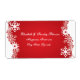 Etiqueta de bodas de invierno rojo con copo de nieve, con un borde blanco de copos de nieve sobre fondo rojo brillante. Una elección perfecta para el invierno de diciembre o para bodas de Navidades.