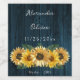 Personalice la carta de vinos única para su boda en la recepción con una rústica etiqueta de Boda de girasol azul. El Wine Label presenta un ambiente rústico de madera con un elegante ramo de girasoles. Personaliza con los nombres del novio y de la novia junto con la fecha del boda, el tipo de vino y el año. También hay material de boda adicional disponible con este diseño.