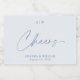 Añade un toque de elegancia a tus favores matrimoniales con esta polvorienta etiqueta de botella de vino azul. Con una caligrafía moderna "Cheers" y nombres de personalizable y fecha, este diseño minimalista es perfecto para botellas pequeñas de champán o vino. Ideal para bodas, duchas de novias o cenas de ensayo, esta etiqueta aporta un detalle elegante y personal a su celebración.