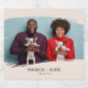 Las etiquetas de boda fotográfico modernas, modernas y abstractas. El diseño presenta una sola foto de la novia y el novio dentro del marco de la carrera de pintura sobre un fondo y nombres brillantes de color rosa.