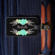 Etiqueta para el equipaje con un monograma de personalizado y flores verde azuladas y plateadas