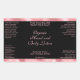 Esta elegante etiqueta de producto para botellas de cosméticos presenta un estilo clásico con fondo negro y un borde de lámina rosa falsa. Esta etiqueta contiene espacio para el nombre de su producto, nombre de la empresa, peso del producto, ingredientes, instrucciones, redes sociales y dirección de la empresa. Esta etiqueta mide 4,5 pulgadas por 2,7 pulgadas (114 mm por 68 mm) y es adecuada para botellas con un diámetro de 1,5 pulgadas (38 mm) o más y un área de altura de etiqueta de al menos 3 pulgadas (76 mm). La mayoría de las botellas de 8 oz (240 ml) y 16 oz (480 ml) se ajustan a esta descripción (específicamente botellas de estilo cosmo o bala y cilindro), pero verifique las especificaciones de la botella para estar seguro. Esta etiqueta es una excelente opción para envasar productos de belleza que requieren etiquetas más grandes.