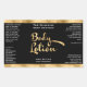 Esta elegante etiqueta de producto para botellas de loción corporal presenta un fondo negro con un falso borde de Relieve metalizado dorado. Esta etiqueta contiene espacio para su nombre de negocio, peso del producto, ingredientes, instrucciones, medios sociales y dirección comercial. Esta etiqueta mide 4,5 pulgadas por 2,7 pulgadas (114 mm por 68 mm) y es adecuada para botellas con un diámetro de 38 mm o más y una altura de la etiqueta de al menos 3 pulgadas (76 mm). La mayoría de los frascos de 8 oz (240 ml) y de 16 oz (480 ml) se ajustan a esta descripción (específicamente cosmo o bala y botellas de estilo cilindro), pero compruebe las especificaciones del frasco para asegurarse. Esta etiqueta es una gran elección para el embalaje de productos de belleza que requieren etiquetas más grandes.