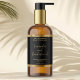 Esta elegante marca de producto para botellas cosméticas presenta un fondo negro con un falso borde de Relieve metalizado dorado. Esta etiqueta contiene espacio para el nombre de su producto, nombre comercial, peso del producto, ingredientes, instrucciones, medios sociales y dirección comercial. Esta etiqueta mide 4,5 pulgadas por 2,7 pulgadas y está disponible en acabado brillante o mate.