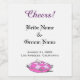 Una plantilla personalizada de etiqueta de botella de vino con letras de escritura morada, letra gótica para los nombres de la Novia y el Novio y más espacio para su ubicación y fecha personalizadas, con un grabado vintage de la zapatilla de cristal de Cenicienta en una almohada de patchwork rosa.