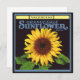 Ilustracion vintage de arte para naranjas de la marca Orangedale Sunflower Valencia. Etiqueta de caja de fruta retro con un gran girasol de jardín floreciente amarillo.
