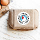 Pegatina de etiqueta de cartón de huevos frescos de granja - cabeza de pollo negra