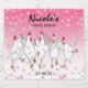 Agrega un toque de brillo a la noche de tu amiga con esta etiqueta de cerveza personalizada para despedida de soltera, perfecta para una divertida fiesta de soltera temática. El diseño falso de brillo rosa y blanco presenta gallinas bailando. Personaliza con el nombre de la futura novia y la fecha de la despedida de soltera.