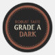 Etiqueta tu jarabe de arce para la venta de acuerdo con el nuevo sistema de clasificación desarrollado por el Instituto Internacional de Jarabe de Arce. Etiqueta negra y dorada con borde discontinuo. El texto dice "sabor robusto Grado A Oscuro".