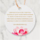 Elegante etiqueta colgante redonda con magnolias de color rosa brillante.