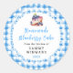 Este divertido y caprichoso pegatina cuenta con una tarta de arándano azul sobre una doncella de encaje blanco y un fondo de gingham azul. Es perfecto para etiquetar tus productos caseros. El texto combina el guión manuscrito y las fuentes serif para un aspecto elegante y moderno.