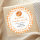 Este divertido y caprichoso pegatina cuenta con una calabaza sobre una doncella blanca de encaje y un fondo de gingham naranja. Es perfecto para etiquetar tus productos caseros. El texto combina el guión manuscrito y las fuentes serif para un aspecto elegante y moderno.