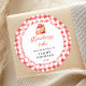 Esta divertida y caprichosa etiqueta presenta una torta de fresa sobre un bordado de encaje blanco y un fondo de gingham rojo. Es perfecta para etiquetar tus productos caseros. El texto combina fuentes manuscritas y serif para un estilo moderno y elegante.