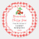 Esta divertida y caprichosa etiqueta presenta cerezas sobre un tapete de encaje blanco y fondo de gingham rojo. Es perfecta para etiquetar tus productos caseros. El texto combina fuentes manuscritas y serif para un aspecto elegante y moderno.