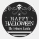 Etiqueta de cráneo blanco y negro de Halloween Feliz Halloween de (o personalizar con tu propio texto)