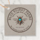 Abeja de miel dibujada a mano con una etiqueta de cuello de jarra de corazón turquesa