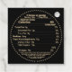 Etiqueta negra con abeja heráldica rodeada por un borde de "cuadrados punteados". "Miel" impreso en una fuente metálica de gradiente dorado con apariencia 3D. Honey Nutrition Hechos sobre la espalda con letras doradas con bordes punteados.