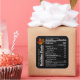 Cambie esta etiqueta de datos de nutrición de jarabe de arce para que coincida con el tamaño de su envase. Sólo tiene que editar el número de porciones por contenedor usando la lista de tamaños de volumen comunes en el campo de formulario. Fondo negro con una colorida hoja de arce amarillo y verde en la esquina. El título es rotado y dice "jarabe de arce puro".