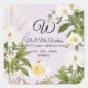 El fondo de lavanda suave púrpura se puede cambiar para que coincida con la paleta de colores de su boda. El arte botánico vintage elegante en un diseño moderno nuevo presenta flores elegantes blancas y marfil, incluyendo lirios, rosas silvestres, clemátides y peonías. El sobre de dirección de devolución cuadrado sella con su monograma, nombre y dirección. Audrey Jeanne Roberts. Derechos de autor.