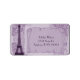Añada un toque de color a su correo saliente con este atractivo diseño de etiquetas de dirección con un diseño parisino vintage adornado con rollos, sellos postales y la Torre Eiffel en color púrpura amatista. El texto de personalizable le permite alterar las fuentes, cambiar los colores y tamaños del texto según desee. También está disponible un papel de correspondencia con este diseño.