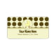 Etiqueta de dirección con fondo de puntos de polka marrón en la parte superior. Cañón amarillo dentro del círculo amarillo en el centro superior. Personaliza el texto marrón.