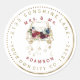 Diseño único de etiqueta de dirección circular con un viejo coche dorado falso, texto "recién casados" en él, ramo de flores burdeos con rubor, texto circular. Utilice la herramienta Personalizar para agregar su información, inicial y es posible que tenga que ajustar para que quepa, cambiar los colores de la fuente. Agregue un espacio entre letras y doble espacio entre palabras para este "aspecto".