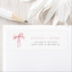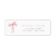 Una etiqueta de dirección de devolución que presenta un lazo de acuarela y una fuente moderna. Esta etiqueta de dirección es la forma perfecta de terminar tu papelería para tu baby shower, bridal shower o evento especial con tema coquette. Combina con cualquier cosa de la colección BLYTHE para un look coherente.