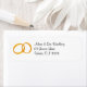 Pegatinas de etiquetas con autodirección boda. Anillos de boda dorados, plantilla personalizada de personalizable.