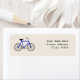 Etiqueta de dirección con el ilustracion de una bicicleta azul a la izquierda. Personalice su dirección a la derecha de la bicicleta.