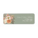Elegante etiqueta de dirección de retorno de boda con un fondo verde sabio y un suave diseño floral de acuarela en melocotón, crema y rubor. Perfecto para sellar sobres en su suite boda rústica o boho. Hermosos pares con invitaciones y tarjetas de detalles a juego.