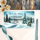 Una elegante etiqueta de dirección con una pintura acuarela de una escena de invierno. Hermoso para una boda de invierno u otro correo de invierno.
