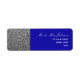 Etiqueta de dirección de devolución simple, elegante y moderna con brillo plateado y azul real. ¡La elección perfecta para bodas de invierno glamorosas y contemporáneas!