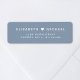 Etiquetas de dirección de devolución azules polvorientas chic y minimalistas para invitaciones de boda, guardar la fecha, anuncios de compromiso, invitaciones de ducha de parejas, tarjetas de agradecimiento y otra correspondencia. Personalice su monograma con sus nombres unidos por un corazón y su dirección de devolución en tipografía blanca moderna simple.