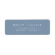 Una etiqueta de dirección de devolución que presenta una paleta de colores azul polvorienta y una fuente moderna. Esta etiqueta de dirección es la forma perfecta de terminar tu papelería para tu baby shower moderno, despedida de soltera, boda o evento especial. Combina con cualquier cosa en la colección OLIVER para un look coherente.