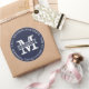 Texto de color blanco sobre una pegatina de fondo azul marino. Fácilmente personalizable con su monograma. Da un aspecto elegante y sofisticado a su papelería de boda. Ideal para una boda con tema de color púrpura.