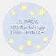 Este diseño presenta una etiqueta de dirección de devolución simple y linda, estrellas amarillas de acuarela azul minimalista, una tipografía clásica adorable y elegante, con etiquetas personalizadas caprichosas y chic, sello de sobre pegatina para fiesta, ideal para diseño gráfico de baby shower, elegante y caprichoso, azul pervinca moderno y trendy, pegatina vintage de tomillo de guardería